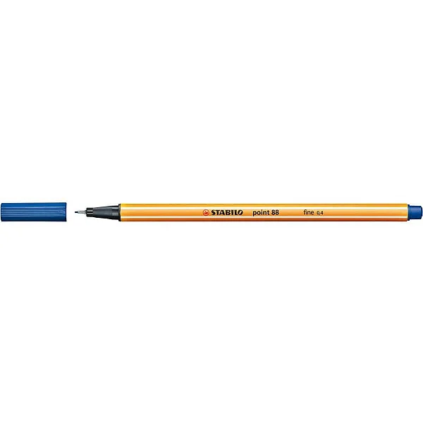 A Stabilo Point 88 é a caneta extra fina número 1 da Europa, mundialmente reconhecida pelo seu design icônico de corpo laranja com listras brancas. A cor 41 (Azul Real/Dark Blue) é um tom clássico e elegante, ideal para quem busca uma alternativa sofisticada ao azul padrão.